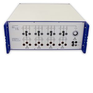 The PCD 121 is used for coupling of 1,2/50us – 8/20us combination wave impulses up to 6.6kV peak onto unshielded symmetrical data and signal lines according IEC/EN standards. Up to 2 pairs / 4 wires can be tested simultaneously. To obtain maximum flexibility only coupling elements are included in the PCD 121. Decoupling circuits, which depends on the EUT to be tested, can be placed separately in the test setup. Manual coupling path switching for common mode (longitudinal, line to earth) as well as differential mode (transversal, line to line) testing. Default coupling elements are gas arrestors and breakdown avalanche diodes. The coupling elements can be selected easily. The direct coupling output allows the customer to use his own coupling elements.