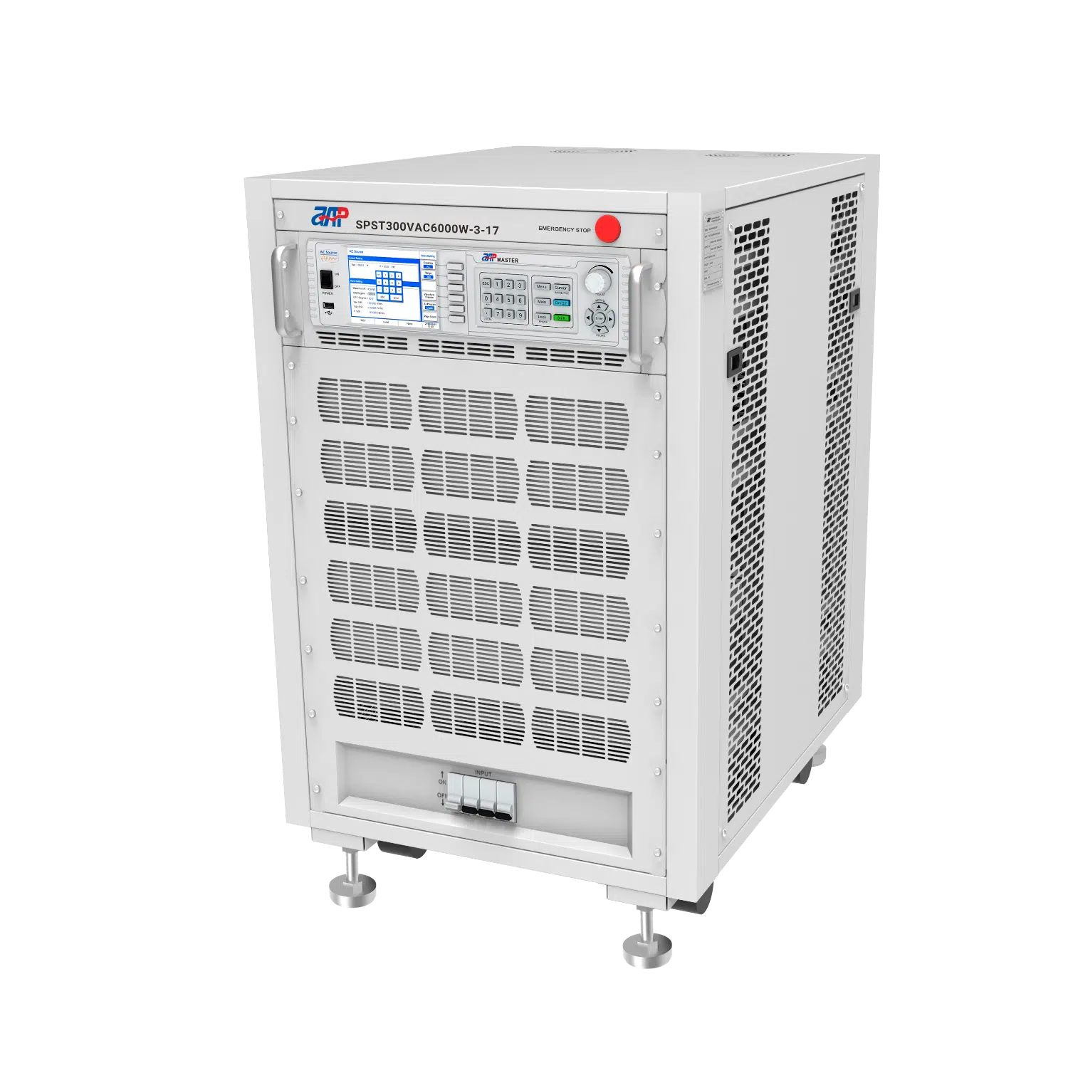 The SPST Series is a programmable AC power supply that offers a 3-phase output with a remarkable power density. It leverages high-speed DSP+CPLD control, high-frequency PWM technology, and an active PFC design to deliver stable DC/AC output power, supporting both 3-phase and 1-phase output configurations.